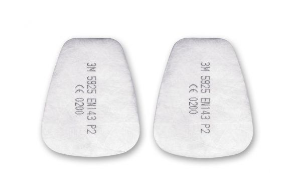 | 2 Προφίλτρα σωματιδίων 5925 - Προφίλτρα Σωματιδίων 3MTM σειρά 5000. Επίπεδο προστασίας: P2R Προστασία έναντι: στερεά σωματίδια και σταγονίδια. |