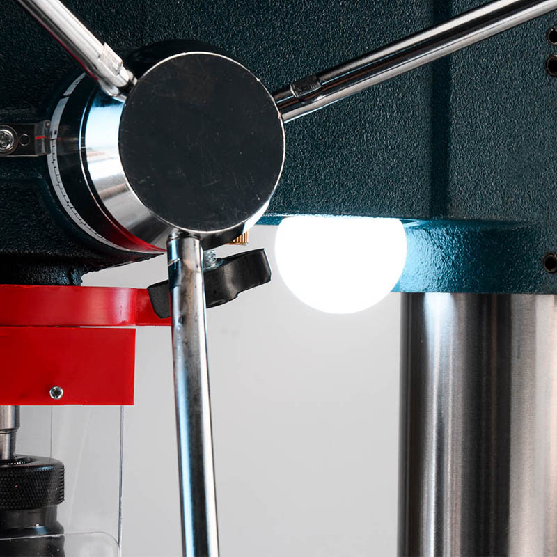 - Περιλαμβάνει διακόπτη NVR, ψηφιακή οθόνη ταχύτητας διάτρησης, φως λέιζερ και LED, ρυθμιζόμενη γωνία τραπέζης εργασίας, χειρολαβή τροφοδοσίας τριών ακτίνων, προστατευτικό τσοκ ασφαλείας, ράβδος και γρανάζι για ακριβείς ρυθμίσεις ύψους τραπέζης, ανθεκτική βάση από χυτοσίδηρο.