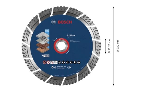 - Με αυτόν τον συνδυασμό βέλτιστων κόκκων διαμαντιού και προηγμένου σχεδιασμού, ο διαμαντόδισκος κοπής Bosch EXPERT MultiMaterial προσφέρει απαράμιλλη μακροζωία.