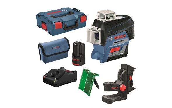 Bosch - GLL 3-80 CG Γραμμικό Λέιζερ με Πίνακα Στόχου και Στήριγμα Τοίχου BM1 Πράσινης Προβολής σε L-Boxx (1x2.0Ah) 12V