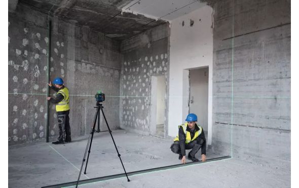 - Οι φωτεινές πράσινες ακτίνες λέιζερ προσφέρουν έως και τέσσερις φορές καλύτερη ορατότητα από τις κόκκινες ακτίνες, για να κάνουν τη χωροστάθμηση ευκολότερη – ανεξάρτητα που εργάζεστε.