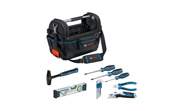 - Ανοικτού τύπου τσάντα εργαλείων και 8 επαγγελματικά εργαλεία χειρός Bosch για τέλεια ευελιξία.