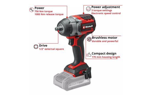 Einhell - TP-CW 18/750-C Li BL - Solo Professional Μπουλονόκλειδο Μπαταρίας 18V Li-Ion Brushless - Χωρίς Μπαταρία και Φορτιστή (Solo)