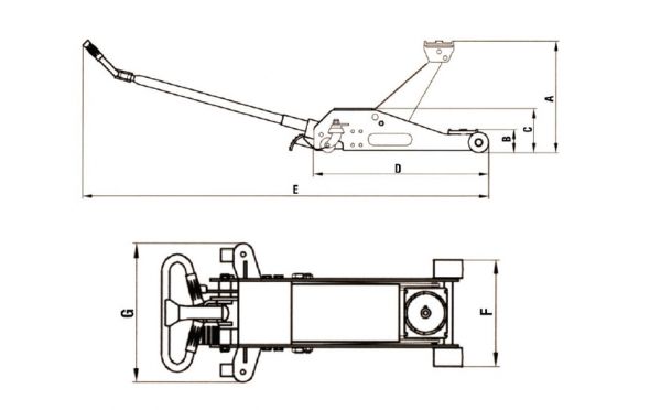 | Διαστάσεις: A: 500 mm, B:145 mm, C: 155 mm, D: 634 mm, E: 1638 mm, F: 275 mm, G: 346 mm |