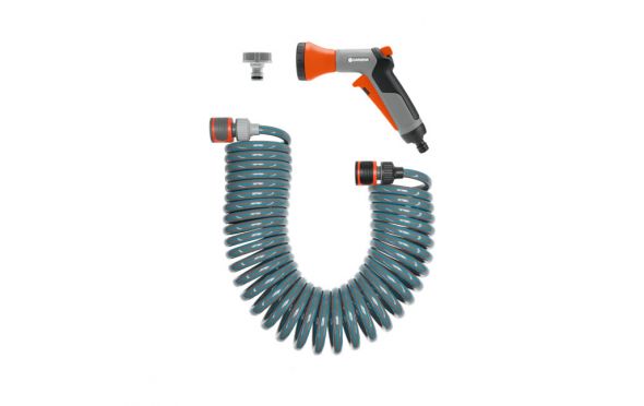 Το Σετ Λάστιχο Σπιράλ με Συνδέσμους GARDENA είναι το πρακτικό ολοκληρωμένο σύστημα για το πότισμα του μικρού σας παραδείσου. Με Ακροφύσιο Σήτα και Ρακόρ.