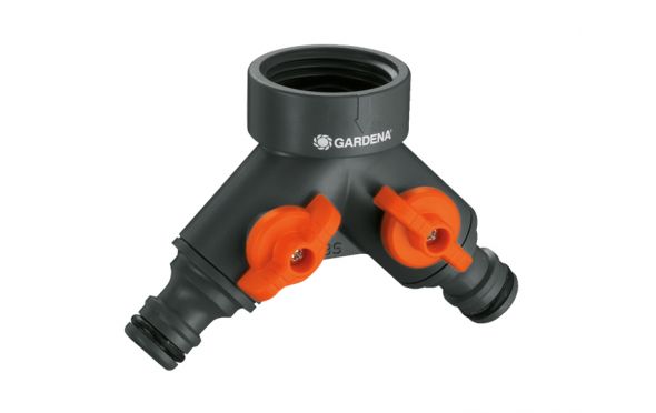 - Η Λοξή Διπλή Παροχή της GARDENA διευκολύνει τη λειτουργία δύο ποτιστικών συσκευών.
