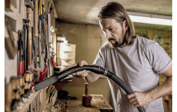 - Η αφαιρούμενη λαβή με ηλεκτροστατική προστασία επιτρέπει την τοποθέτηση αξεσουάρ απευθείας στον εύκαμπτο σωλήνα αναρρόφησης.