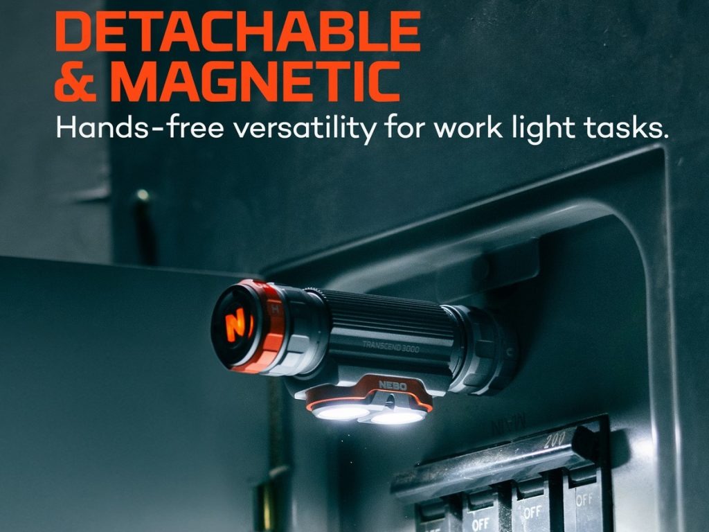 - Ο φακός TRANSCEND 3000 της ΝΕΒΟ λειτουργεί ως φακός κεφαλής και μπορεί να χρησιμοποιηθεί και ως φακός εργασίας, καθώς αποσπάται από τη βάση του.