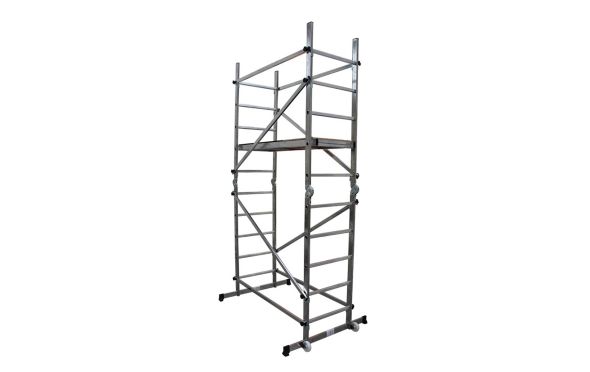 Σκαλωσιά AC300M (1.5MX0.50M).Σκαλωσιά αλουμίνιου με 4 αυτόματες ασφάλειες.Δυνατότητα σκαλωσιάς να διαμορφώνεται σε 2 διαφορετικές θέσεις κλειδώματος.Εύκολη στην μεταφορά και αποθήκευση λόγο του μεγέθους όταν αποσυναρμολογείται.Πλατφόρμα 150Χ0,50m με καταπακτή αδιάβροχο κόντρα πλακέ με αντιολισθητική επιφάνεια 4 διαγώνια και 4 οριζόντια με μηχανισμό ταχείας ασφάλισης.2 τροχούς Φ125mm για ταχύτερη μετακίνηση.2 τραβέρσες αλουμίνιου στο κάτω μέρος για επιπλέον στήριξη.Μέγιστοί ύψος πλατφόρμας 2m, Kg26.