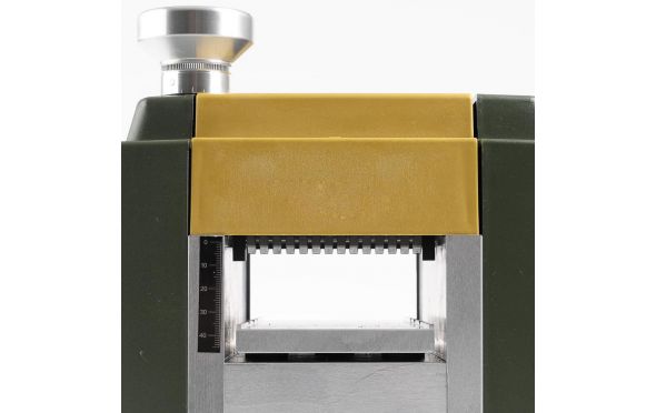 Επιφάνεια εργασίας με τριπλή άτρακτο (κατασκευασμένη από χυτοπρεσαριστό αλουμίνιο και φρεζαρισμένη), η οποία μπορεί να ρυθμιστεί με ακρίβεια έως 1/10mm από ένα τροχό χειρός (μηδενικής ρύθμισης).
