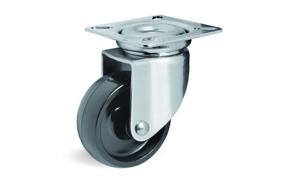 Τροχοί επίπλων κτιρίων από μαύρο πολυαμίδιο 6.Συνιστάται για χρήση σε καρότσια τροφοδοσίας με χαμηλό βάρος.Καλή αντοχή σε χημικούς παράγοντες: δεν είναι κατάλληλοι για ανώμαλο δάπεδο.Παραδείγματα συνιστώμενων εφαρμογών: Εκθεσιακά σταντ, καροτσάκια εστιατορίων, έπιπλα με ελαφρά φορτία.