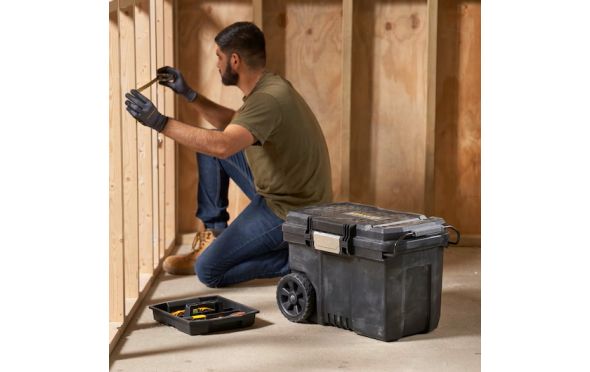 Γρήγορη πρόσβαση στα εργαλεία καθώς μπορεί να ανοίξει με ένα άγγιγμα.Βαθμός προστασίας IP43 για αντοχή στην σκόνη και τις σταγόνες.Με εσωτερικό αφαιρούμενο δίσκο για την οργάνωση μικρότερων αντικειμένων. Ενσωματωμένη αυλάκωση V στο καπάκι κατάλληλη για πριόνισμα σωλήνων και ξυλείας.Ανθεκτικοί τροχοί 7''.