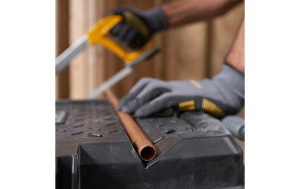 - Ενσωματωμένη αυλάκωση V στο καπάκι κατάλληλη για πριόνισμα σωλήνων και ξυλείας.