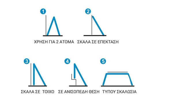 - Δυνατότητα σκάλας να διαμορφώνεται σε 5 διαφορετικές θέσεις κλειδώματος.