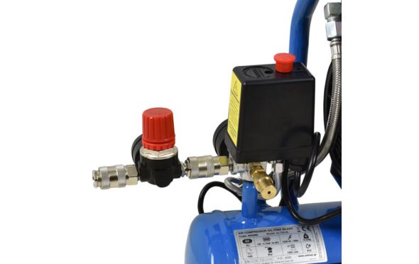Αεροσυμπιεστής με μοτέρ BRUSHLESS και SILENT (μειωμένης στάθμης θορύβου και κεφαλή OIL FREE (χωρίς λάδι). Κατάλληλος για εφαρμογές σε χώρους που απαιτείται αισθητά μειωμένος θόρυβος.Mε επαγωγικό Ηλεκτροκινητήρα 1440 rpm , μονού πυκνωτή 20 μF , θερμικό 3,5 Α , Duty Cycle S3.Πιεσοστάτης ρυθμιζόμενης πίεσης λειτουργίας .Ρυθμιστής πιέσεως ρυθμιζόμενος από 0 έως 8 bar με 1 εξόδο με ταχυσύνδεση.Με 2 μανόμετρα στον πιεσοστάτη και στον ρυθμιστή με μονάδες σε kPa-BAR - Lb/in2 -PSI.Με φίλτρο αναρρόφησης κεφαλής ανοιγόμενο τύπου HEPA .Σε 4 αντικραδασμικές βάσεις για ομαλή λειτουργία.Με βάνάκι αφυδάτωσης αεροφυλλακίου.