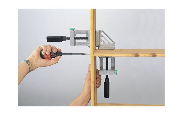 Μέγγενη Γωνιών με μηχανισμό για γωνιακές συνδέσεις 90° και οδηγό κοπής για κοπές 45°.