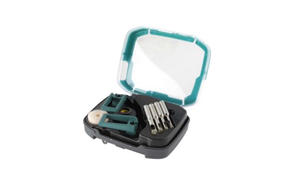 Περιλαμβάνει ποτηροκορώνες με επικάλυψη διαμαντιού «Ceramic» σε διαμέτρους 5, 6, 8 και 10 mm, καθώς και έναν οδηγό με ενσωματωμένο σπόγγο για σωστή υδρόψυξη της επίστρωσης διαμαντιού και την ακριβή διάνοιξη οπών.