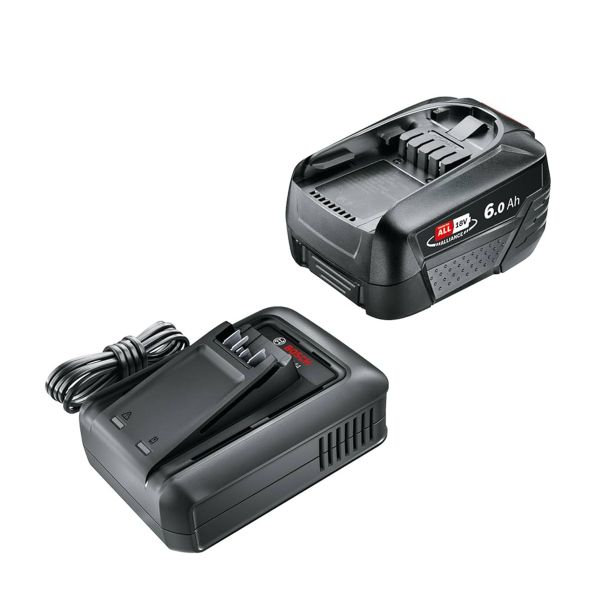 - Ισχυρή μπαταρία ιόντων λιθίου και φορτιστή ο οποίος μπορεί να χρησιμοποιηθεί για όλα τα εργαλεία του συστήματος Power4All 18V της Bosch.