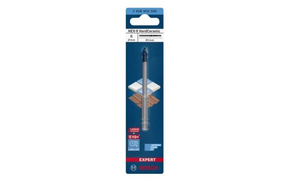 - Το τρυπάνι Bosch EXPERT HEX-9 HardCeramic είναι σχεδιασμένο για τη διάτρηση κεραμικών και μπορεί να ανοίγει τρύπες σε σκληρά πλακίδια, χωρίς λιπαντικό ή ψύξη