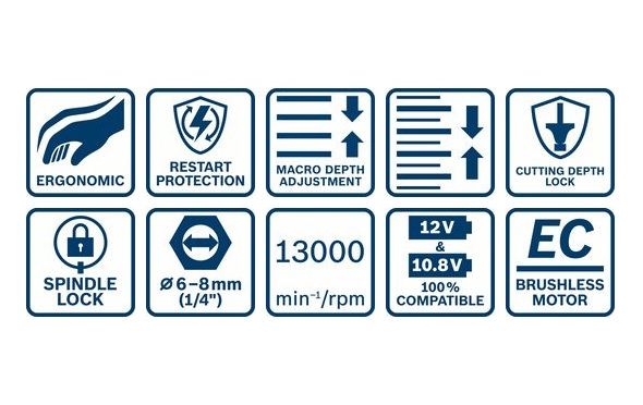 - Η πρώτη στον κόσμο επαγγελματική φρέζα ακμών μπαταρίας – νέο σχήμα για τέλειο έλεγχο και εύκολο χειρισμό με το ένα χέρι.