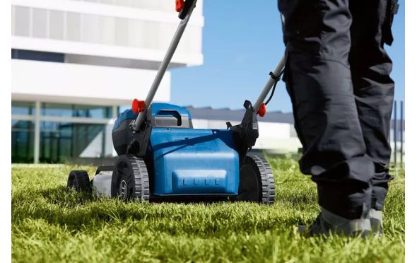 Η συντήρηση μεγαλύτερων γκαζόν συχνά συνοδεύεται από αυστηρές απαιτήσεις για ένα ισχυρό χλοοκοπτικό. Αναπτύξαμε το GRA 18V2-46 Professional μπαταρίας με τεχνολογία BITURBO με ισχυρή και αξιόπιστη απόδοση για το γκαζόν σας – όλα στο Bosch Professional 18V System. Ο ισχυρός κινητήρας χωρίς ψήκτρες λειτουργεί με δύο μπαταρίες 18 V και εξασφαλίζει υψηλή απόδοση, αυξημένο χρόνο λειτουργίας και μεγάλη διάρκεια ζωής. Η πτυσσόμενη λαβή επιτρέπει το δίπλωμα του χλοοκοπτικού για εύκολη μεταφορά και αποθήκευση, ακόμη και κάθετα. Η εργονομική αντιολισθητική λαβή με εύκολη ρύθμιση του ύψους σε 2 επίπεδα σας βοηθά να εργάζεστε σε πιο υγιή στάση, καθιστώντας την εργασία πιο άνετη. Το χλοοκοπτικό έχει διάμετρο κοπής 46 cm και προσφέρει ρύθμιση του ύψους κοπής σε 6 επίπεδα από 30 έως...