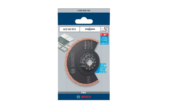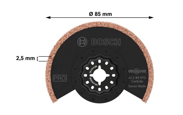 Τα πολυεργαλεία είναι ιδανικά για την αφαίρεση του παλιού αρμόστοκου χωρίς να καταστρέφουν τα πλακάκια γύρω από αυτό. Η PRO ACZ 85 RT3 το κάνει αυτό αποτελεσματικά και προσφέρει μεγάλη διάρκεια ζωής του προϊόντος. Μπορείτε επίσης να τη χρησιμοποιήσετε για να κόψετε κανάλια καλωδίων σε πορομπετόν.Η λάμα PRO ACZ 85 RT3 Grout Segment χρησιμοποιεί σκληρό κόκκο καρβιδίου για να είναι ανθεκτική και αποτελεσματική όταν εργάζεστε σε λειαντικά υλικά.Τραχύς, αποτελεσματικός κόκκος καρβιδίου.