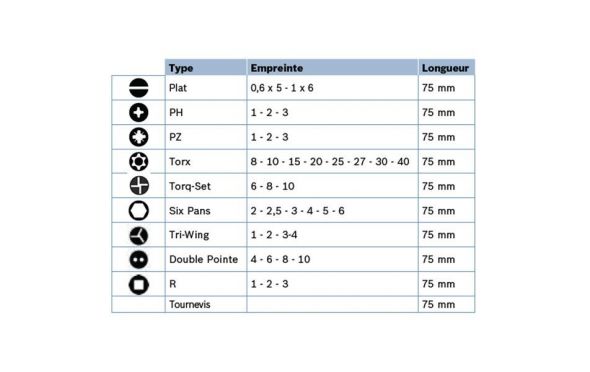 9 διαφορετικοί τύποι κατσαβιδόλαμων Περιλαμβάνεται κατσαβίδι χειρός L = 75 mm για να φτάνετε παντού