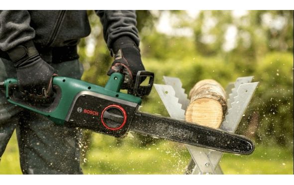 Το ηλεκτρικό UniversalChain, ελαφρύ με 4,3 kg και εργονομικά σχεδιασμένο για μέγιστη άνεση χρήστη. Ένας ισχυρός κινητήρας 1.800 W με μια ταχύτητα αλυσίδας 12 m/s εξασφαλίζει γρήγορη κοπή. Το συμπαγές σύστημα SDS Bosch επιτρέπει την απλή και χωρίς εργαλεία τάνυση της αλυσίδας και συντήρηση. Ένα μεγάλο πλευρικά τοποθετημένο δοχείο λαδιού με ένα άνετο προσδεδεμένο καπάκι εγγυάται την εύκολη επαναπλήρωση του συστήματος αυτόματης λίπανση της αλυσίδας. Ένα στιβαρό φρένο ανάκρουσης εξασφαλίζει την πλήρη ακινητοποίηση της αλυσίδας για ασφάλεια. Αυτό το αλυσοπρίονο είναι ευκολόχρηστο και ευέλικτο, καθιστώντας το ιδανικό για πριόνισμα κούτσουρων, κλαδιών και μικρών έως μεσαίων δένδρων.