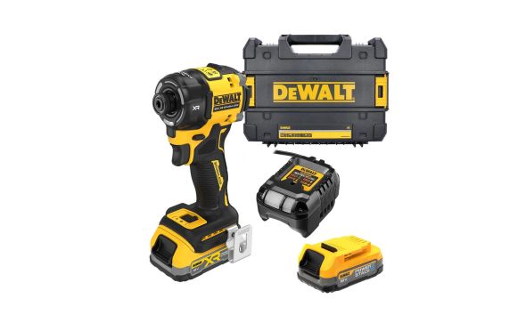 - Η κομπακτ μπαταρία 18V DEWALT POWERSTACK™ χρησιμοποιεί επαναστατική τεχνολογία στοιβαζόμενων κυψελών μπαταρίας, για να κάνει αυτήν την μπαταρία την πιο ισχυρή (έναντι της μπαταρίας DCB183, όχι σε χρήση) και πιο ελαφριά (έναντι των μπαταριών DEWALT 18V XR 2.0Ah ή χαμηλότερης ισχύος) μπαταρία που διαθέτουμε.