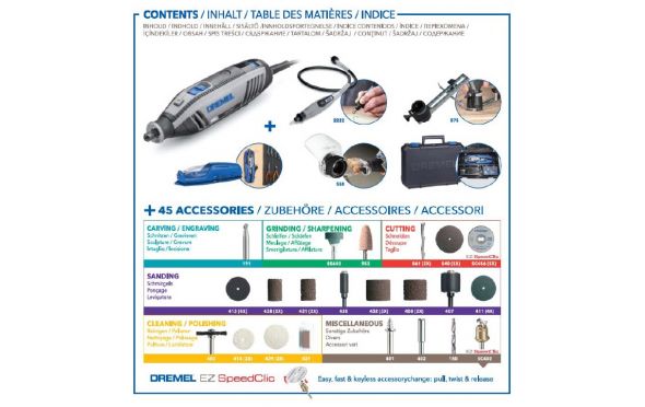• Εκτελέστε την ευρύτερη γκάμα εφαρμογών σε οποιοδήποτε υλικό χάρη στη συμβατότητά του με όλα τα εξαρτήματα και προσαρτήματα της Dremel, συμπεριλαμβανομένου του EZ SpeedClicκαι της νέας γκάμας των εξαιρετικά ανθεκτικών εξαρτημάτων Dremel MAX.