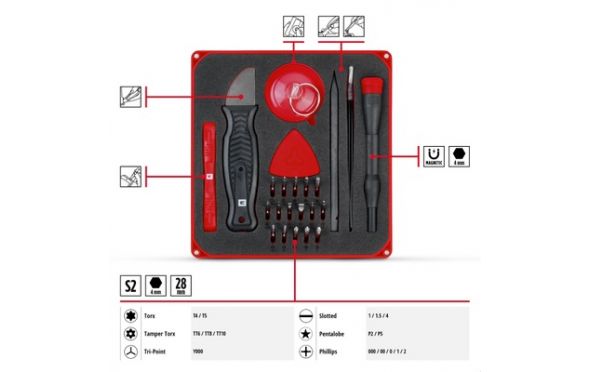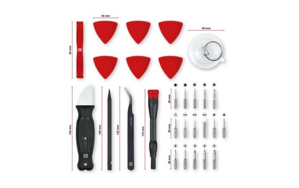 - Το σετ περιέχει πρόσθετα εργαλεία ακριβείας που διευρύνουν τη γκάμα των εργασιών που μπορούν να εκτελεστούν.