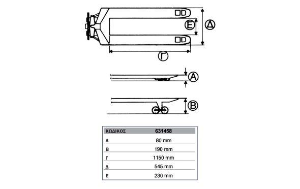 | A (mm) 80, B (mm) 190, Γ (mm) 1150, Δ (mm) 545, Ε (mm) 230 |