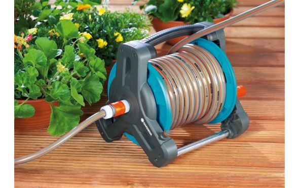 Επομένως, είναι ιδανικό για πολύ μικρούς κήπους, αίθρια ή μπαλκόνια. Χάρη στην εργονομική λαβή, μπορεί επίσης να μεταφερθεί άνετα και να χρησιμοποιηθεί οπουδήποτε. Διαθέτει μανιβέλα ελεύθερης κίνησης για εύκολο χειρισμό του καρουλιού. Μπορείτε επίσης να αναδιπλώσετε τη μανιβέλα. Έτσι, το καρούλι αποθηκεύεται σε ελάχιστο χώρο.