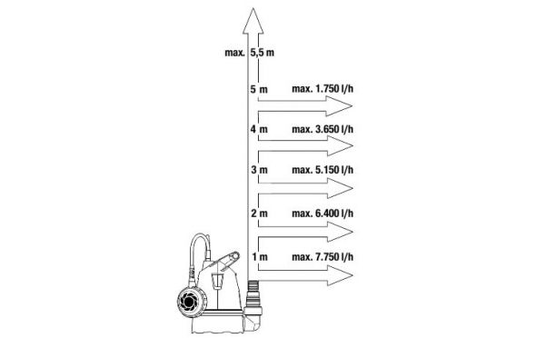 • Περιλαμβάνονται ορισμένες χρηστικές λειτουργίες: μια επίπεδη ικανότητα αναρρόφησης 4 mm, εξασφαλίζοντας ότι σχεδόν όλο το ανεπιθύμητο νερό αποστραγγίζεται και ένα καλώδιο τροφοδοσίας 10 m που επιτρέπει στην αντλία να λειτουργεί αποτελεσματικά μέχρι το μέγιστο βάθος των 6 μέτρων.