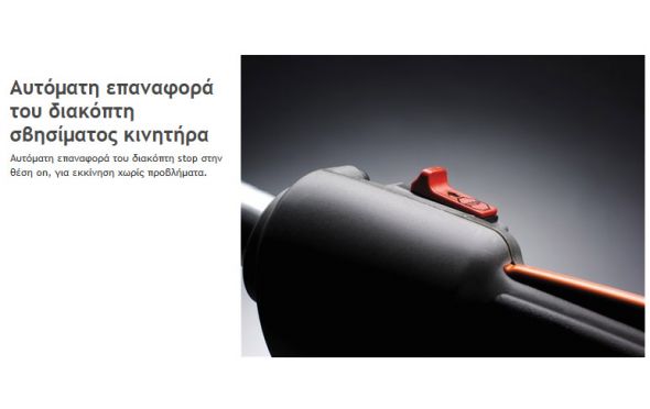 Χαμηλό βάρος - Άνετη εργασία Smart Start® - Εύκολη εκκίνηση Low Vib® - Ξεκούραστη εργασία Περιστρεφόμενη πίσω χειρολαβή - Εύκολος χειρισμός Χαμηλό επίπεδο θορύβου - Λιγότερη ενόχληση για εσάς και τους γύρω σας Αυτόματη επαναφορά του διακόπτη εκκίνησης - Εκκίνηση χωρίς προβλήματα
