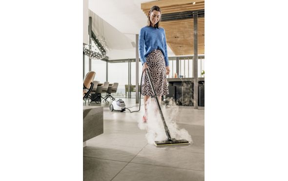 - Ο σχολαστικός καθαρισμός με τον ατμοκαθαριστή Kärcher απομακρύνει το 99,999% των ιών¹⁾ και το 99,99% όλων των κοινών οικιακών βακτηρίων²⁾ από τις τυπικές σκληρές επιφάνειες του νοικοκυριού. Και χάρη σε μια μεγάλη γκάμα διαθέσιμων εξαρτημάτων, μπορεί να καθαρίσει τέλεια λείες επιφάνειες, απορροφητήρες, γωνίες και κενά. Το ιδιαίτερα πρακτικό σίδερο πίεσης ατμού που επίσης περιλαμβάνεται επιταχύνει το σιδέρωμα κατά 50%. Η λειτουργία VapoHydro επιτρέπει επιπλέον την προσθήκη ζεστού νερού και την ευκολότερη απομάκρυνση και πλύση των επίμονων ρύπων.