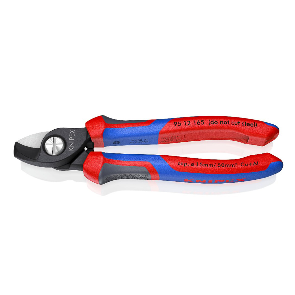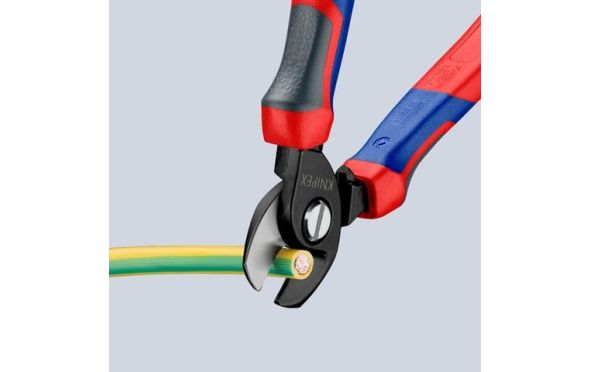 Καθαρή και απαλή κοπή χωρίς στραγγαλισμό ή παραμόρφωση.Εύκολη κοπή με το ένα μόνο χέρι.Αυτομπλοκαριζόμενη, ρυθμιζόμενη βιδωτή άρθρωση.Κόβει πολύκλωνα καλώδια χαλκού και αλουμινίου με διαμέτρους μέχρι Ø 15 mm (50 mm²).Ακατάλληλο για την κοπή χαλύβδινων συρμάτων ή συμπαγών αγωγών από σκληρό χαλκό.Αιχμηρές λάμες με τρόχισμα ακριβείας.Με προστατευτική προεξοχή.Με άνετες, εργονομικές λαβές: αποτελείται από τρία εργονομικά υλικά που προσφέρουν βέλτιστο χειρισμό ενώ είναι εξοπλισμένο με δύο υποδοχές για συνδέσεις KNIPEXtend.