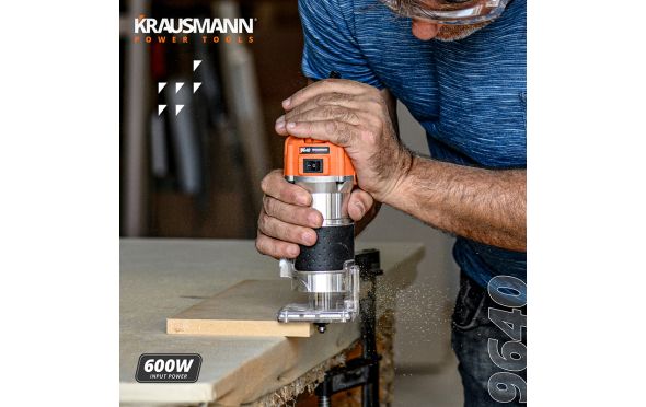 - Ρούτερ περιθωρίων compact βυθιζόμενο KRAUSMANN® 9640, με ισχύ 600W και ρυθμιζόμενη ταχύτητα.