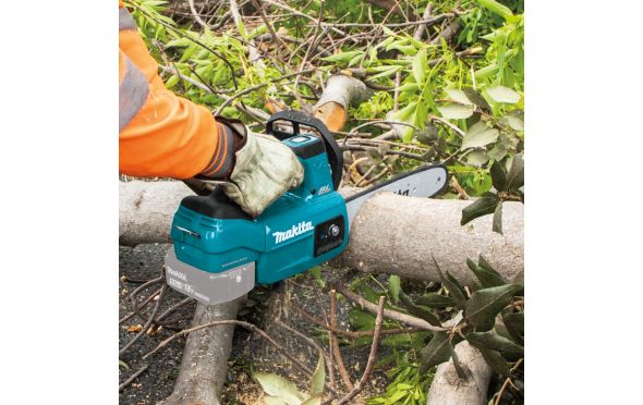 Αλυσοπρίονο μπαταρίας 18V. Φιλικό προς το περιβάλλον με μηδενικές εκπομπές ρύπων και εξαιρετικά χαμηλό θόρυβο. Κινητήρας χωρίς καρβουνάκια. Φρένο αλυσίδας.