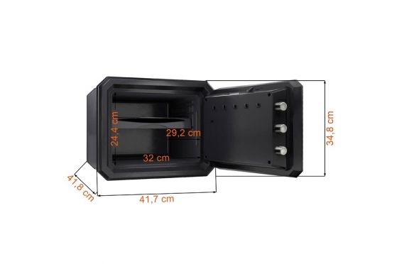 • Οι 3 μεγάλες αυτόματες ατσάλινες μπάρες (60% φαρδύτερες από ένα μέσο χρηματοκιβώτιο), ο ανθεκτικός μεντεσές και η ηλεκτρονική κλειδαριά του, το καθιστούν εξαιρετικά ανθεκτικό στις επιθέσεις.