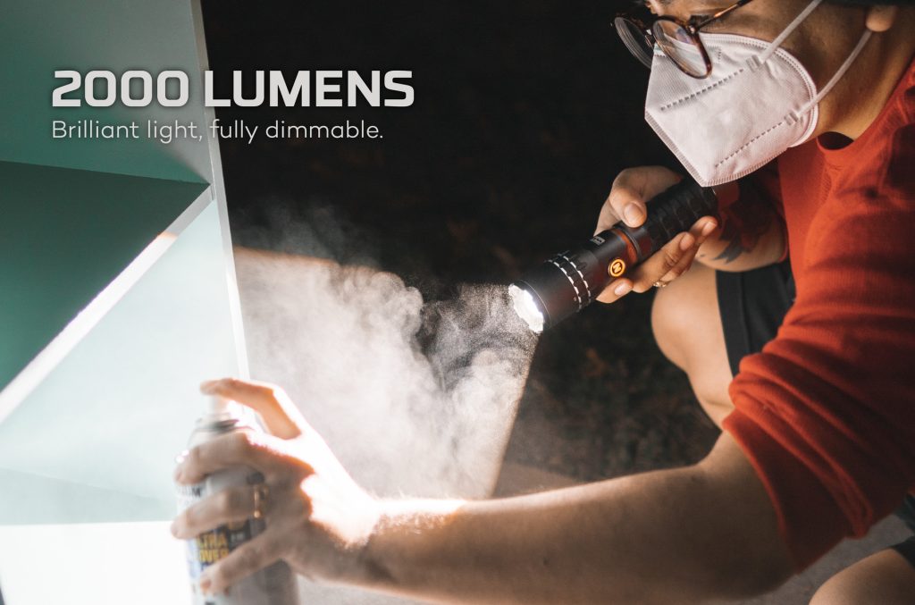 - Διαθέτει φακό 2.000 lumen με ζουμ 4x και C.O.B φως εργασίας 500 lumen. Και τα δύο φώτα διαθέτουν επιλογή ρύθμισης φωτεινότητας με προγραμματιζόμενη μνήμη.