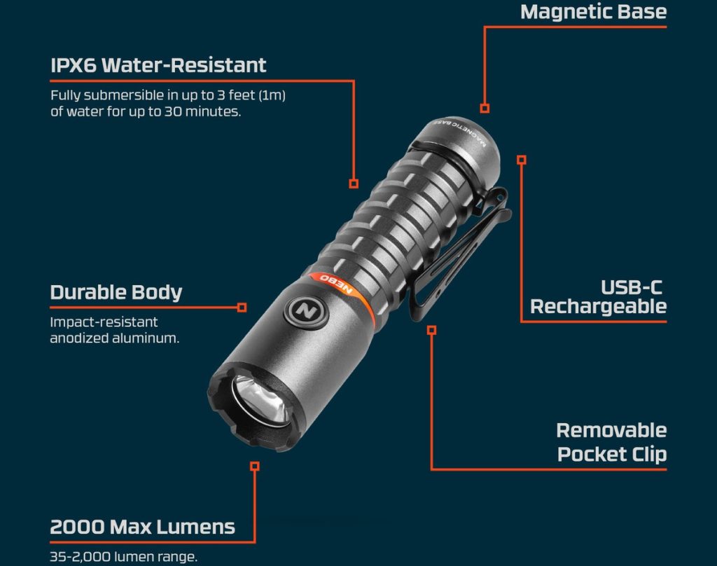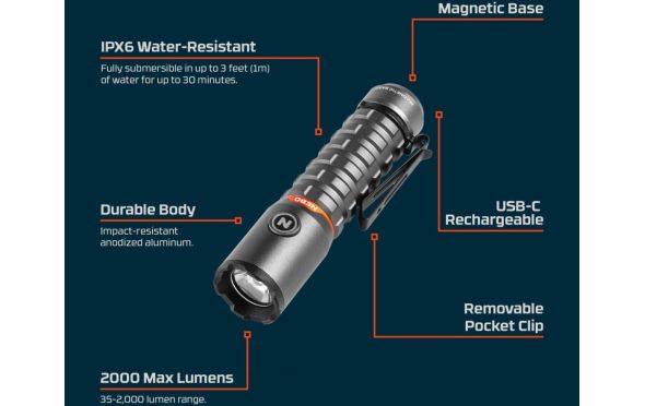 Nebo - TORCHY 2K Black Line Επαναφορτιζόμενος Φακός 2000 Lumen
