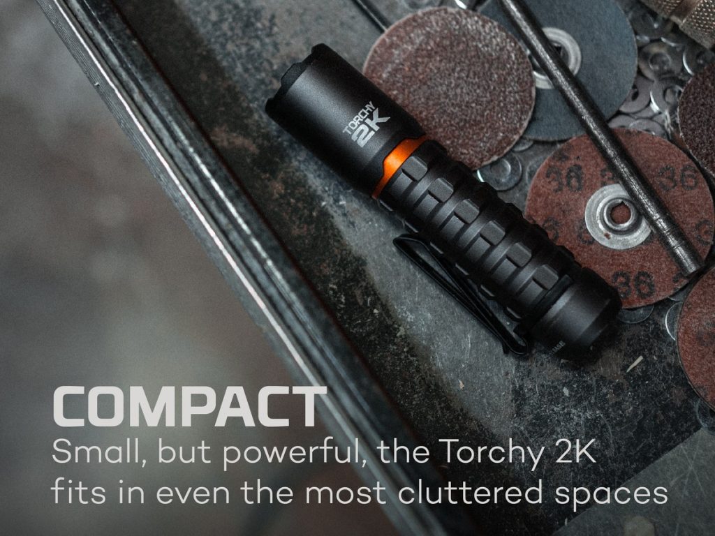 - Ο φακός Torchy 2K είναι επαναφορτιζόμενος, ανθεκτικός στο νερό (IPX6) και είναι εξοπλισμένος με 5 λειτουργίες φωτισμού, οι οποίες εναλλάσσονται απρόσκοπτα μέσω της τεχνολογίας Smart Power Control.