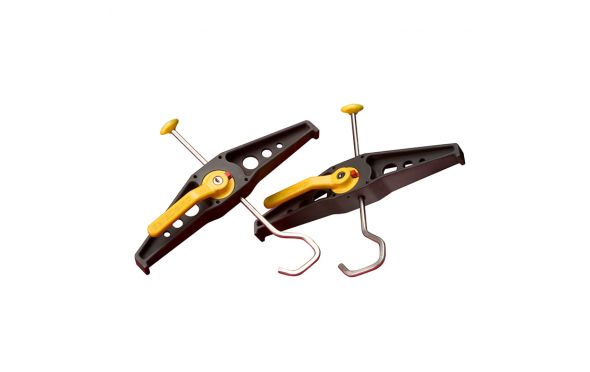 • Διαθέτει 2 βραχίονες από ενισχυμένο υλικό, το οποίο θυμίζει πλαστικό (glass filled nylon) όμως είναι πολύ πιο ισχυρό, σταθερό και ανθεκτικό, 2 μεταλλικούς γάντζους από ανοξείδωτο ατσάλι 304, οι οποίοι αγκιστρώνουν επάνω στην μπάρα οροφής και ασφαλίζουν τον εξοπλισμό σας και μοχλούς ταχείας ασφάλισης/απασφάλισης για να εξασφαλίζεται στον χρήστη 5πλάσια ταχύτητα φόρτωσης/εκφόρτωσης συγκριτικά με αντίστοιχα προϊόντα της αγοράς.