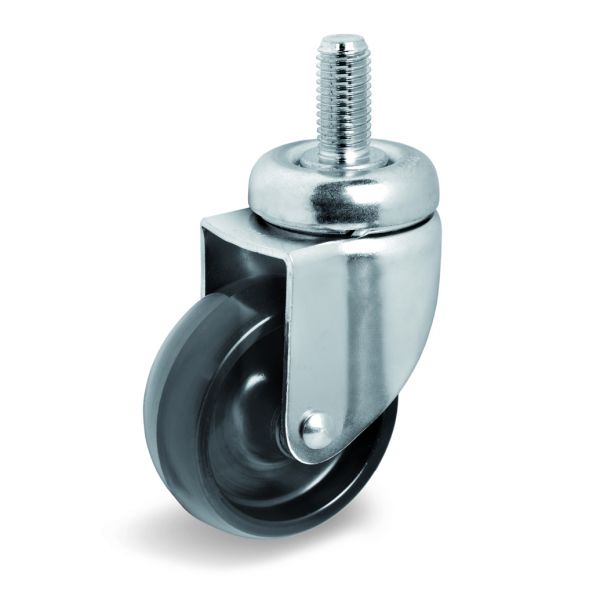 Τροχοί επίπλων κτιρίων από μαύρο πολυαμίδιο 6.Συνιστάται για χρήση σε καρότσια τροφοδοσίας με χαμηλό βάρος.Καλή αντοχή σε χημικούς παράγοντες: δεν είναι κατάλληλοι για ανώμαλο δάπεδο.Παραδείγματα συνιστώμενων εφαρμογών: Εκθεσιακά σταντ, καροτσάκια εστιατορίων, έπιπλα με ελαφρά φορτία.