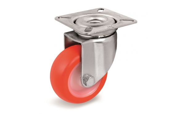 Κατάλληλο για χρήση σε διαφορετικούς τύπους καροτσιών, ιδίως στο χώρο της εστίασης.Καλή ικανότητα μεταφοράς φορτίου σε σχέση με τροχούς μικρής διαμέτρου.Πέλμα:θερμοπλαστική πολυουρεθάνη.Κέντρο: πολυαμίδιο.Βάση: γαλβανιζέ.
