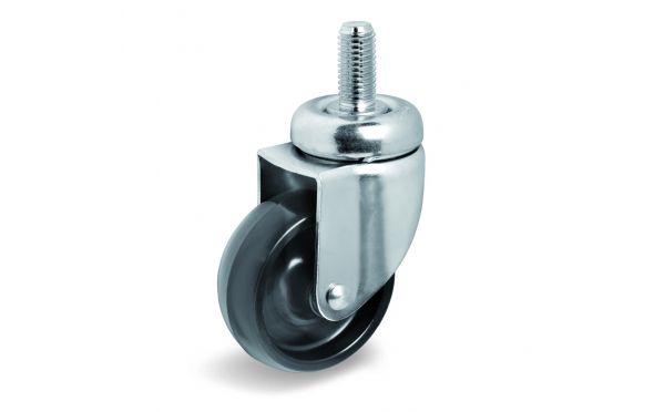 Τροχοί επίπλων κτιρίων από μαύρο πολυαμίδιο 6.Συνιστάται για χρήση σε καρότσια τροφοδοσίας με χαμηλό βάρος.Καλή αντοχή σε χημικούς παράγοντες: δεν είναι κατάλληλοι για ανώμαλο δάπεδο.Παραδείγματα συνιστώμενων εφαρμογών: Εκθεσιακά σταντ, καροτσάκια εστιατορίων, έπιπλα με ελαφρά φορτία.