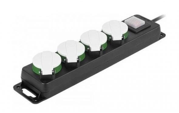 4 πρίζες σούκο IP44 με ειδικό ελαστικό κάλυμμα για προστασία από το νερό.