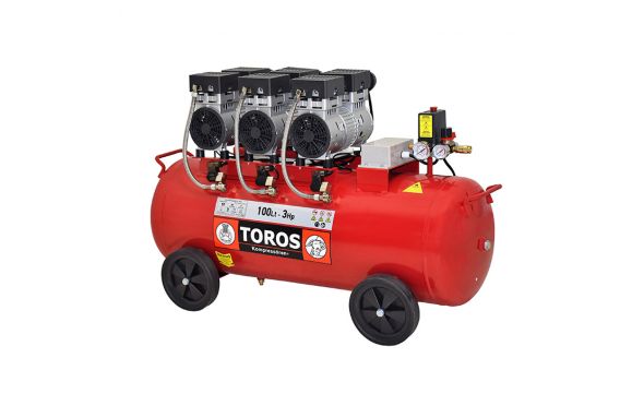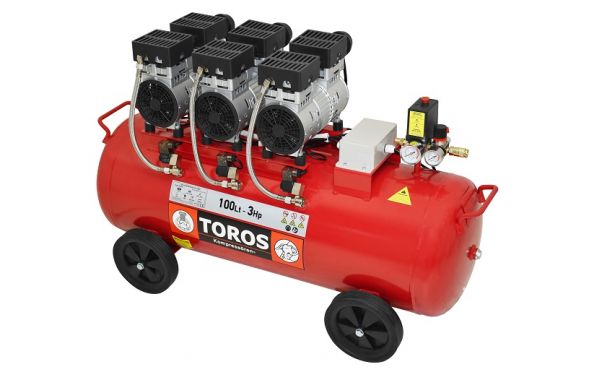 TOROS - Αεροσυμπιεστής Μονομπλόκ Χαμηλού Θορύβου Oilfree 100Lt - 3.0Hp(3x1Hp)