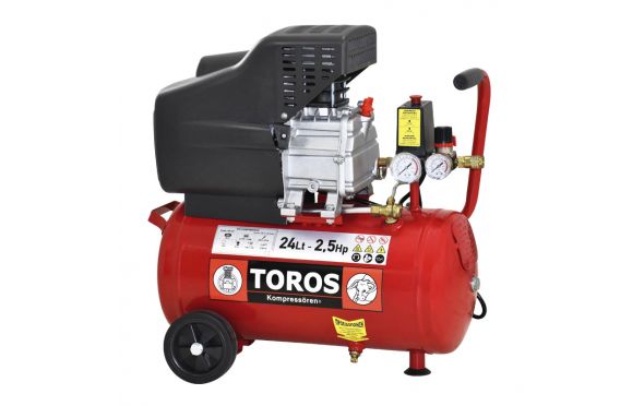 - Ελαιολίπαντος μονοκύλινδρος αεροσυμπιεστής μονομπλόκ 24lt Toros με ισχύ 2,5 ΗΡ